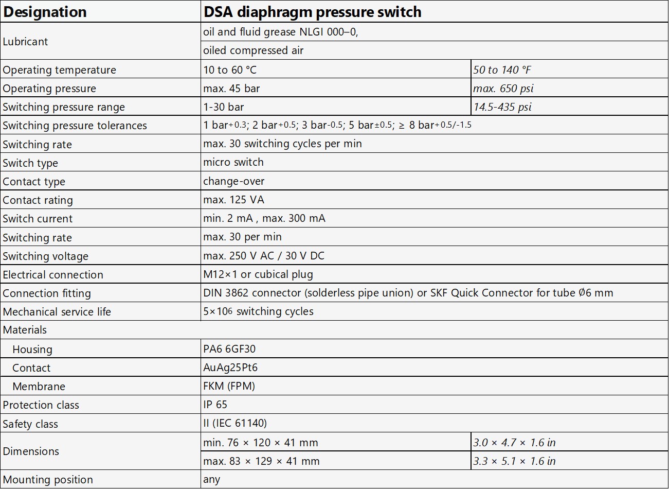 DSA pressure switches monitor the pressure of a lubrication system and help assess