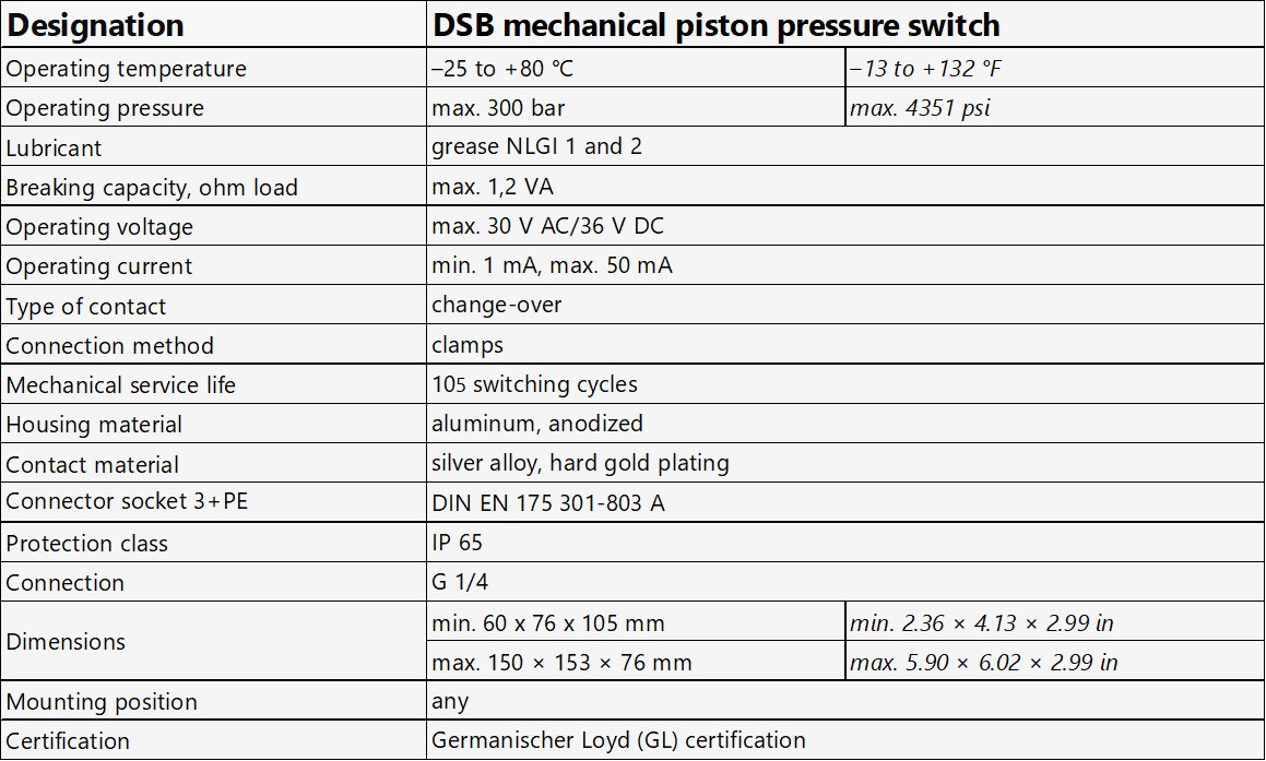 SKF pressure switches of product series DSB are mechanical piston pressure switches