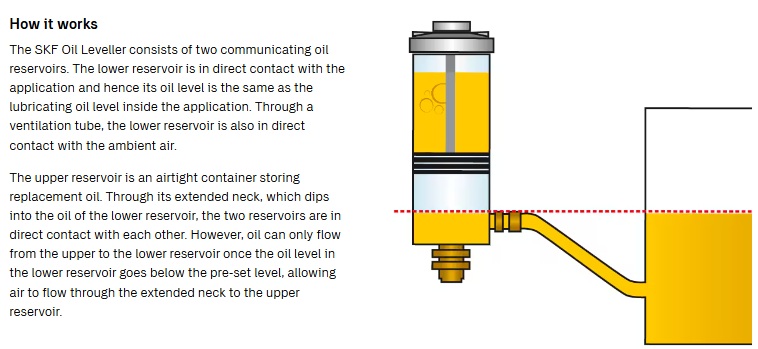 SKF LAHD 500 and LAHD 1000 oil levellers are designed to automatically compensate