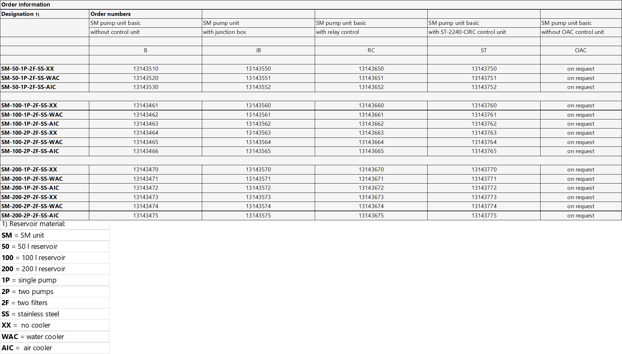 The compact SM oil circulation unit can be designed with 50, 100 or 200 liter stainless steel reservoir.